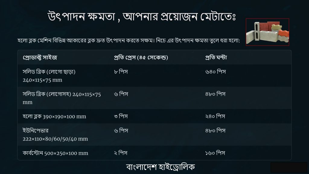 প্রতি ঘন্টায় উৎপাদনঃ ৬৪০ পিস