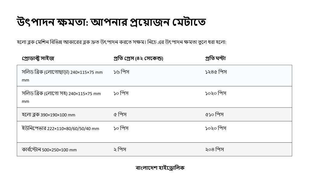 প্রতি ঘন্টায় উৎপাদনঃ ১২৪৫ পিস
